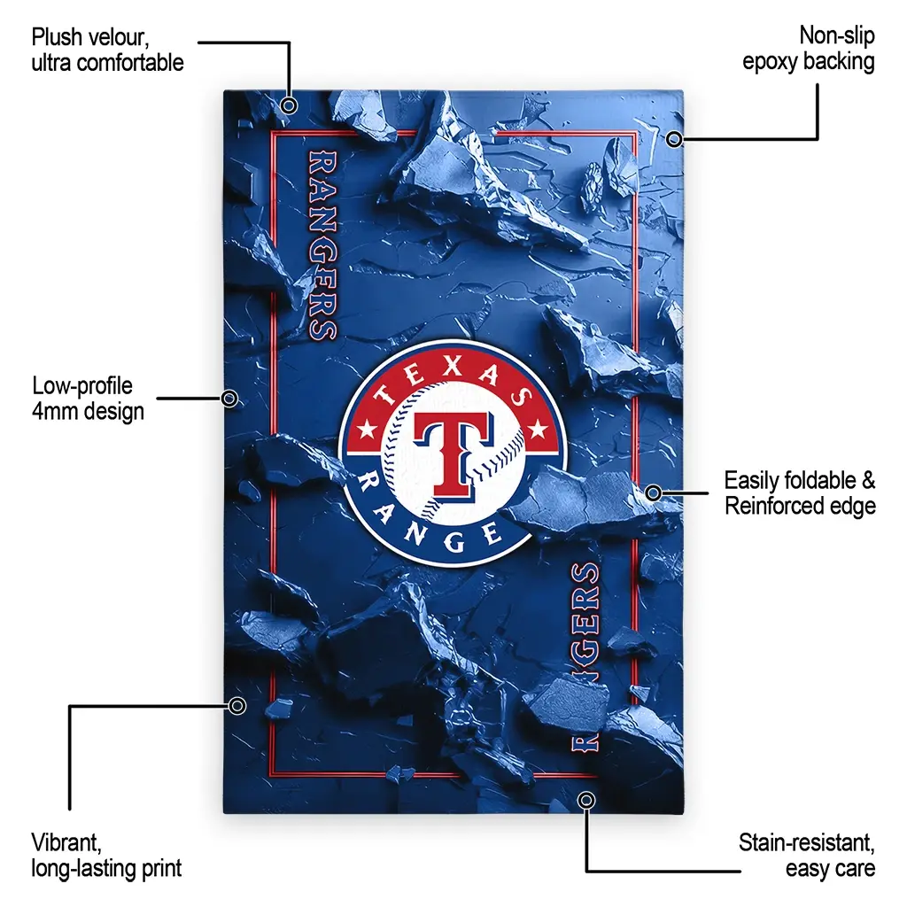 Hit a home run with your favorite team by displaying the Texas Rangers Rug – Customized Cracked Surface Design Blue from MLB Fan Zone. Featuring a bold team design and crafted with plush velour, this durable sports rug offers ultimate comfort for your home or game-day fan cave. With a quality non-slip grip and stay-flat design, it’s the perfect accessory for any die-hard fan ready to rep their team from the living room to the clubhouse.