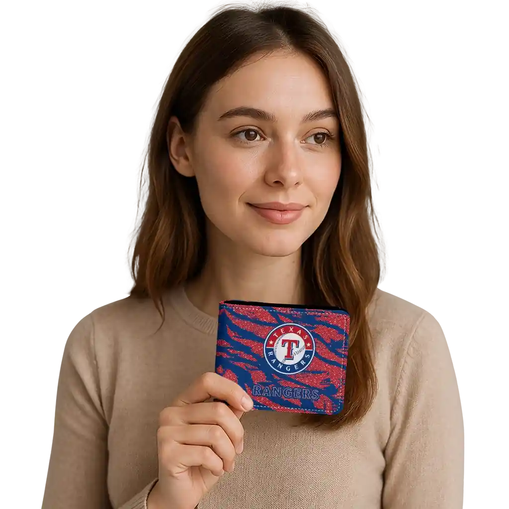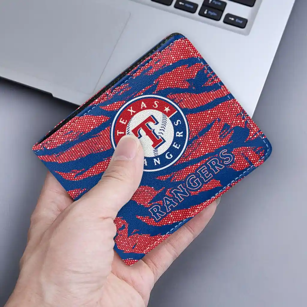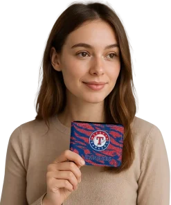 Hit a home run with Texas Rangers by wearing the Texas Rangers Abstract Stripes Blue Wallet. Featuring a bold team design and crafted with premium materials, this durable sports wallet offers plenty of space for your cards, cash, and game-day essentials. With a secure fold-over closure, it’s the perfect accessory for any die-hard fan ready to rep their team, from the dugout to the streets.