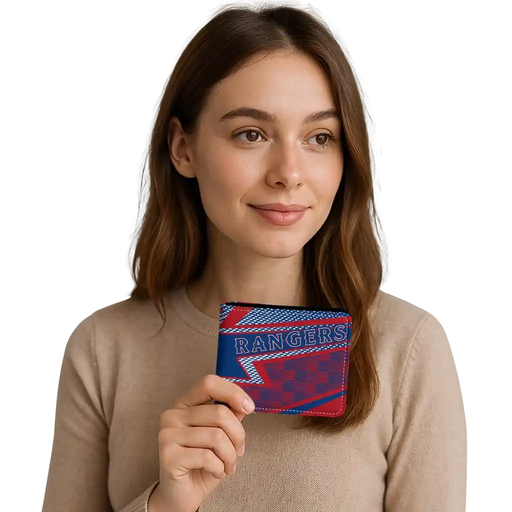 Hit a home run with Texas Rangers by wearing the Texas Rangers Arrow Mesh Blue Wallet. Featuring a bold team design and crafted with premium materials, this durable sports wallet offers plenty of space for your cards, cash, and game-day essentials. With a secure fold-over closure, it’s the perfect accessory for any die-hard fan ready to rep their team, from the dugout to the streets.