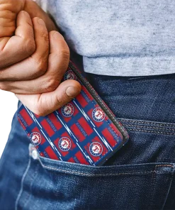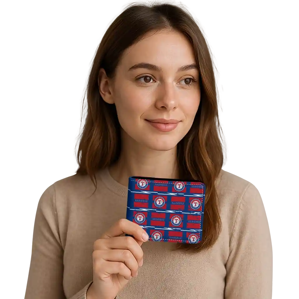 Hit a home run with Texas Rangers by wearing the Texas Rangers Block Pattern Red Crocs Wallet. Featuring a bold team design and crafted with premium materials, this durable sports wallet offers plenty of space for your cards, cash, and game-day essentials. With a secure fold-over closure, it’s the perfect accessory for any die-hard fan ready to rep their team, from the dugout to the streets.