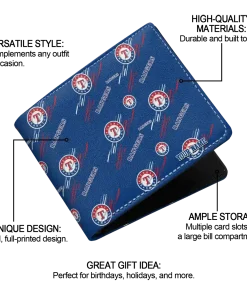 Hit a home run with Texas Rangers by wearing the Custom Texas Rangers Streak Motif Blue Wallet. Featuring a bold team design and crafted with premium materials, this durable sports wallet offers plenty of space for your cards, cash, and game-day essentials. With a secure fold-over closure, it’s the perfect accessory for any die-hard fan ready to rep their team, from the dugout to the streets.