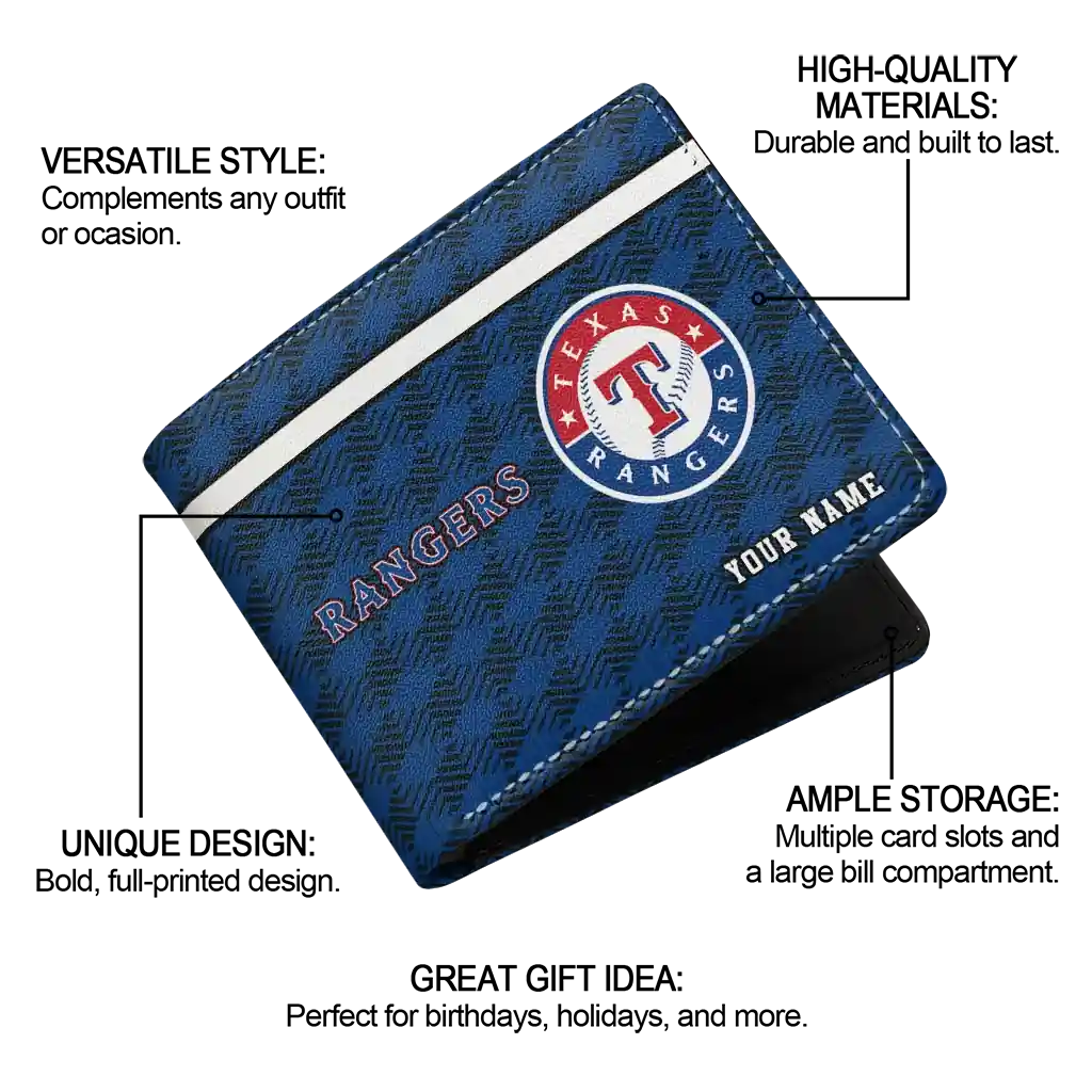 Hit a home run with Texas Rangers by wearing the Customized Texas Rangers Cube Illusion Blue Wallet. Featuring a bold team design and crafted with premium materials, this durable sports wallet offers plenty of space for your cards, cash, and game-day essentials. With a secure fold-over closure, it’s the perfect accessory for any die-hard fan ready to rep their team, from the dugout to the streets.