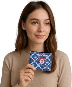 Hit a home run with Texas Rangers by wearing the Customized Texas Rangers Geometric Star Blue White Wallet. Featuring a bold team design and crafted with premium materials, this durable sports wallet offers plenty of space for your cards, cash, and game-day essentials. With a secure fold-over closure, it’s the perfect accessory for any die-hard fan ready to rep their team, from the dugout to the streets.
