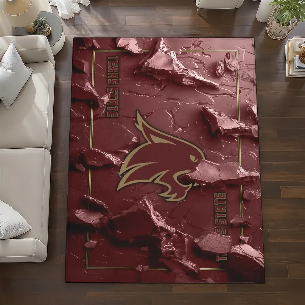 Texas State Bobcats Rug – Cracked Surface Design Maroon