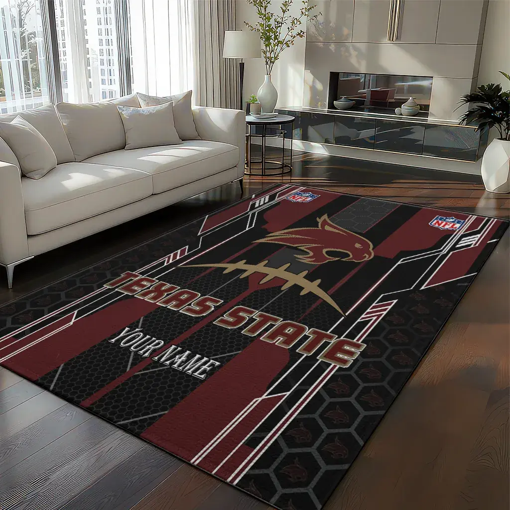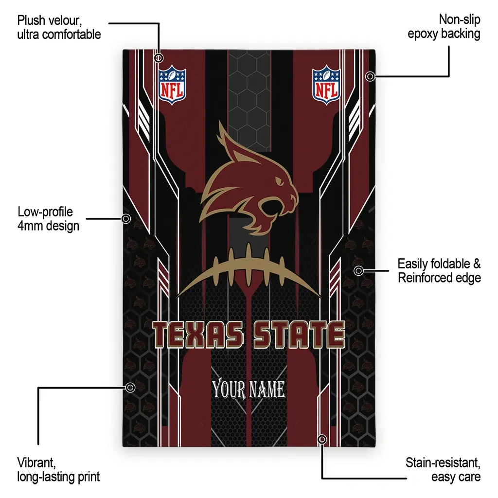 Hit a home run with your favorite team by displaying the Texas State Bobcats Rug – Custom Football Laces Maroon from MLB Fan Zone. Featuring a bold team design and crafted with plush velour, this durable sports rug offers ultimate comfort for your home or game-day fan cave. With a quality non-slip grip and stay-flat design, it’s the perfect accessory for any die-hard fan ready to rep their team from the living room to the clubhouse.