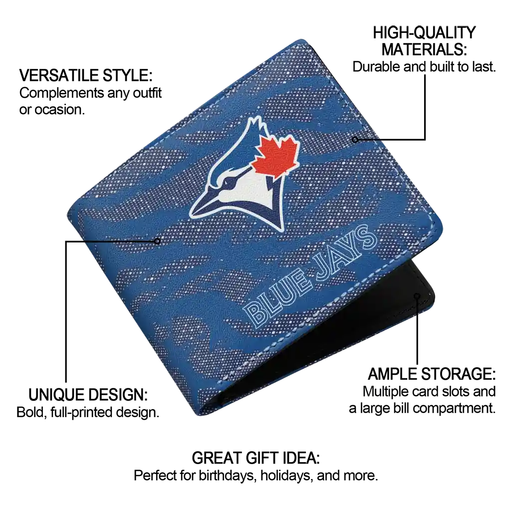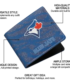 Hit a home run with Toronto Blue Jays by wearing the Toronto Blue Jays Abstract Stripes Blue Wallet. Featuring a bold team design and crafted with premium materials, this durable sports wallet offers plenty of space for your cards, cash, and game-day essentials. With a secure fold-over closure, it’s the perfect accessory for any die-hard fan ready to rep their team, from the dugout to the streets.