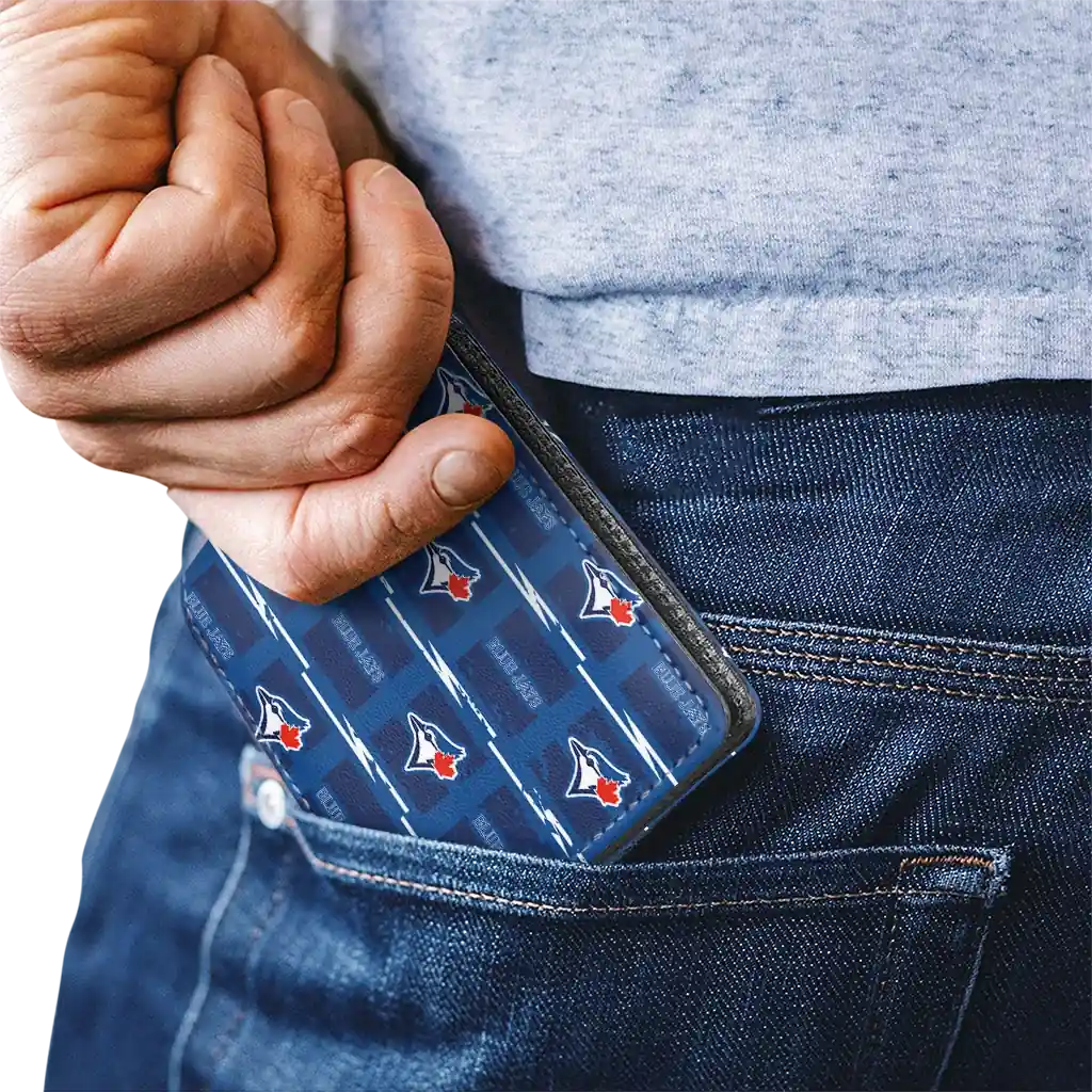 Hit a home run with Toronto Blue Jays by wearing the Toronto Blue Jays Block Pattern White Crocs Wallet. Featuring a bold team design and crafted with premium materials, this durable sports wallet offers plenty of space for your cards, cash, and game-day essentials. With a secure fold-over closure, it’s the perfect accessory for any die-hard fan ready to rep their team, from the dugout to the streets.