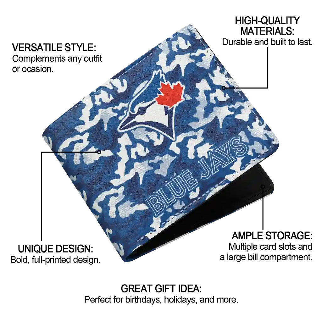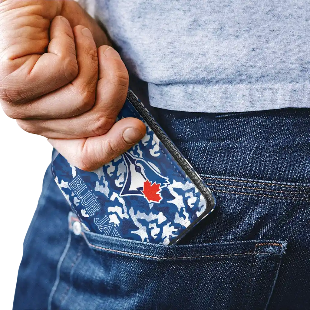Hit a home run with Toronto Blue Jays by wearing the Toronto Blue Jays Camouflage Patches Blue White Wallet. Featuring a bold team design and crafted with premium materials, this durable sports wallet offers plenty of space for your cards, cash, and game-day essentials. With a secure fold-over closure, it’s the perfect accessory for any die-hard fan ready to rep their team, from the dugout to the streets.