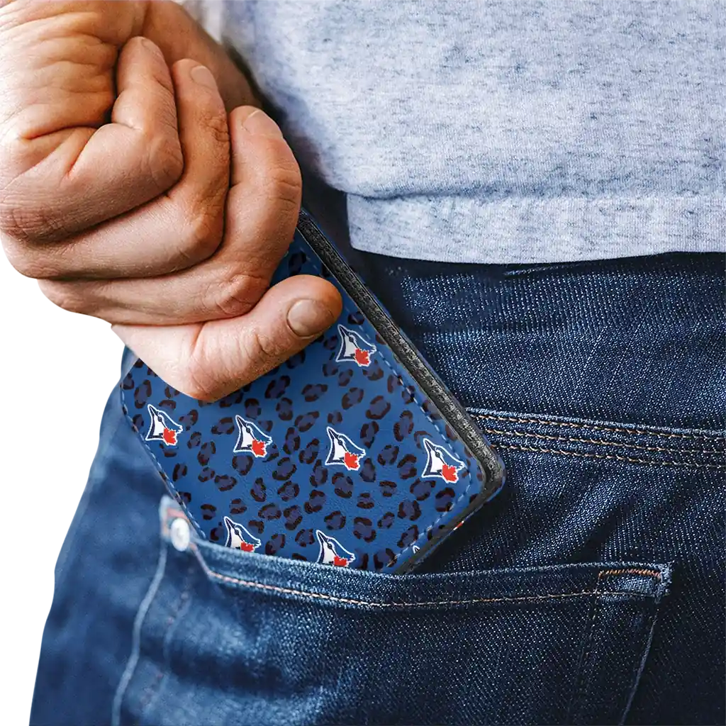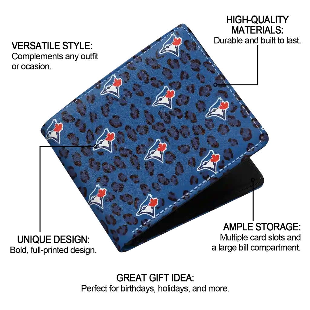 Hit a home run with Toronto Blue Jays by wearing the Toronto Blue Jays Leopard Texture Blue Wallet. Featuring a bold team design and crafted with premium materials, this durable sports wallet offers plenty of space for your cards, cash, and game-day essentials. With a secure fold-over closure, it’s the perfect accessory for any die-hard fan ready to rep their team, from the dugout to the streets.