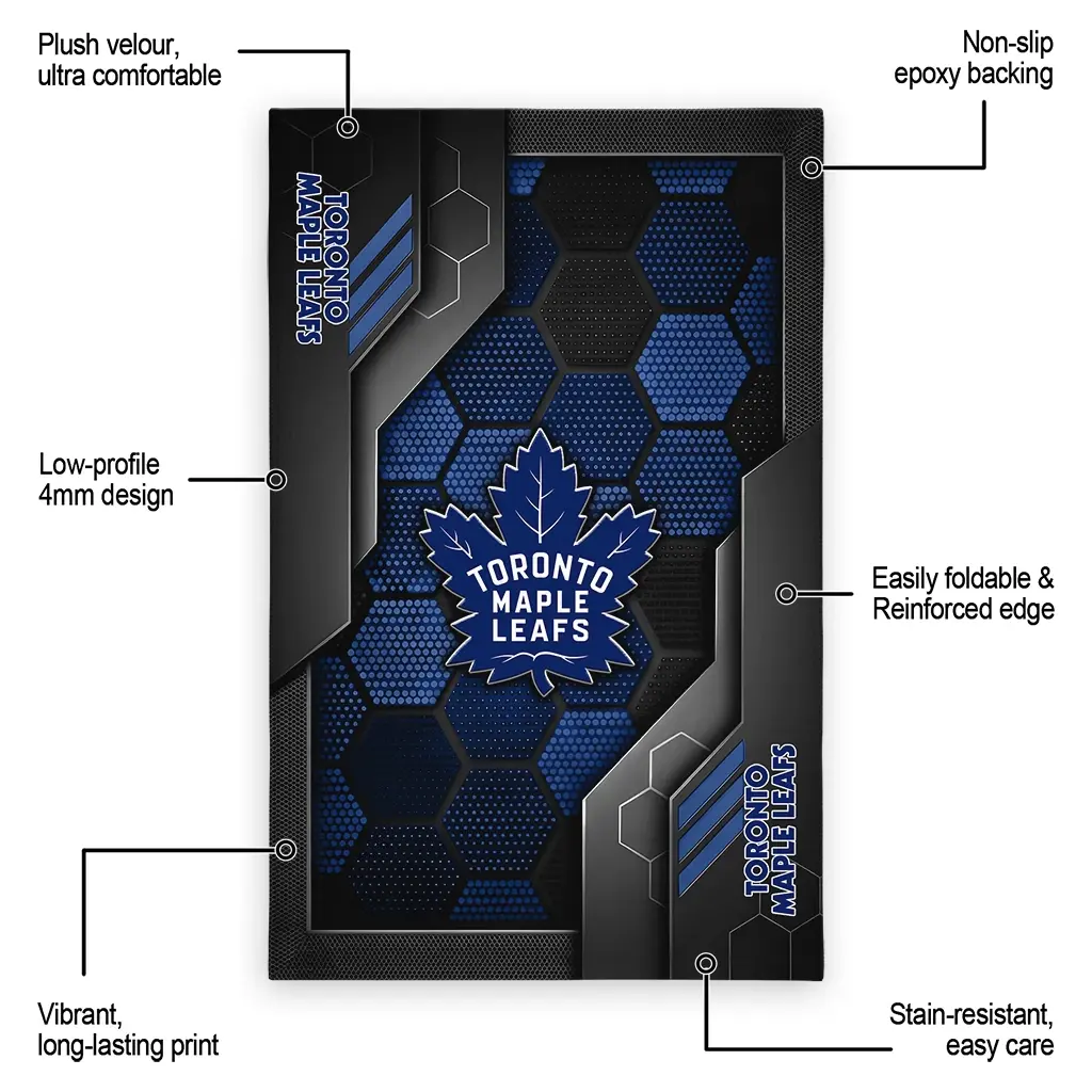 Hit a home run with your favorite team by displaying the Toronto Maple Leafs Rug – Custom Hexagonal Grid Pattern Blue from MLB Fan Zone. Featuring a bold team design and crafted with plush velour, this durable sports rug offers ultimate comfort for your home or game-day fan cave. With a quality non-slip grip and stay-flat design, it’s the perfect accessory for any die-hard fan ready to rep their team from the living room to the clubhouse.