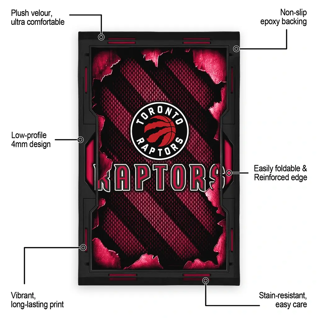 Hit a home run with your favorite team by displaying the Toronto Raptors Rug – Personalized Torn Mesh Red from MLB Fan Zone. Featuring a bold team design and crafted with plush velour, this durable sports rug offers ultimate comfort for your home or game-day fan cave. With a quality non-slip grip and stay-flat design, it’s the perfect accessory for any die-hard fan ready to rep their team from the living room to the clubhouse.