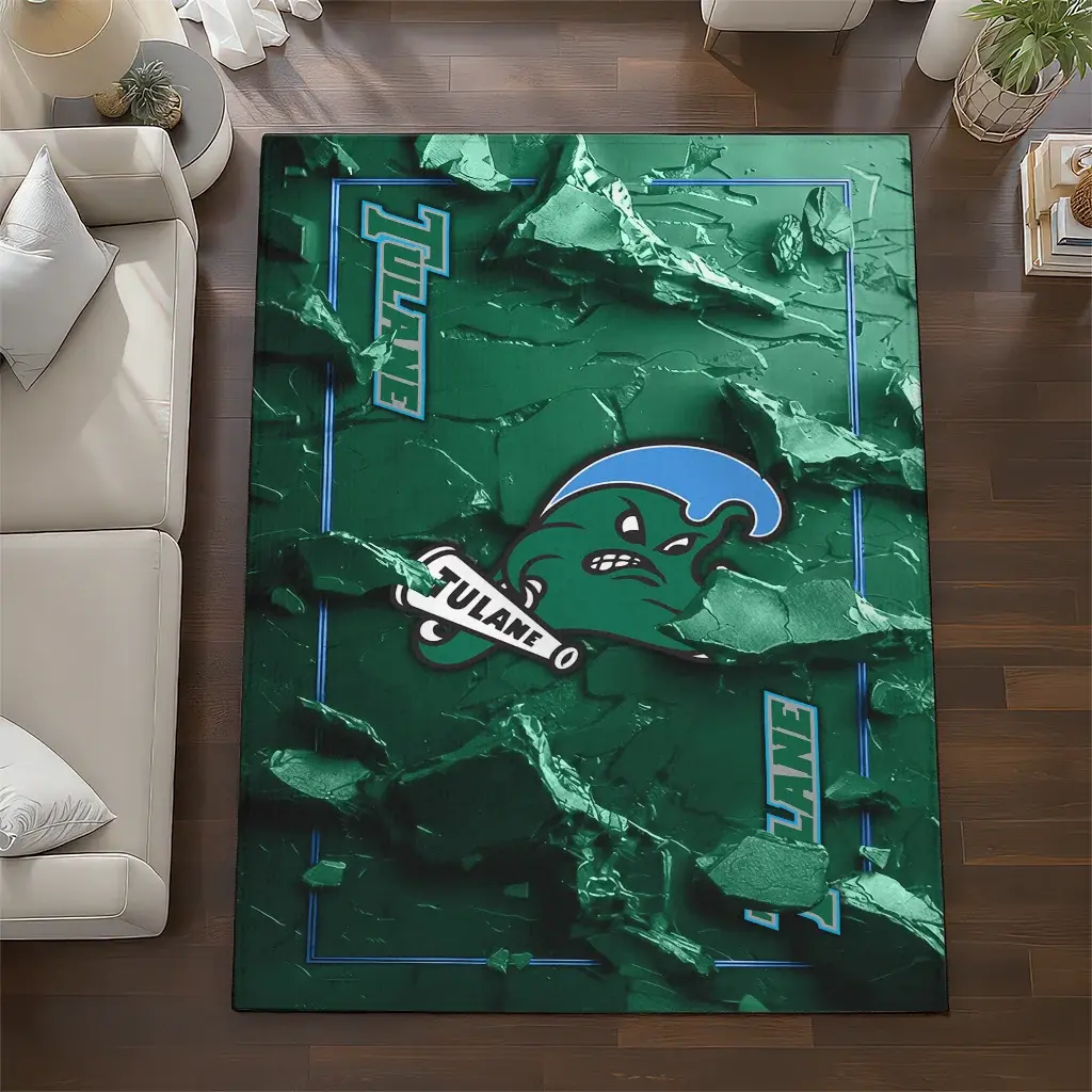 Tulane Green Wave Rug – Cracked Surface Design Green