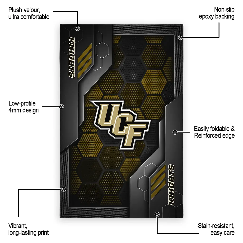 Hit a home run with your favorite team by displaying the UCF Knights Rug – Custom Hexagonal Grid Pattern Gold from MLB Fan Zone. Featuring a bold team design and crafted with plush velour, this durable sports rug offers ultimate comfort for your home or game-day fan cave. With a quality non-slip grip and stay-flat design, it’s the perfect accessory for any die-hard fan ready to rep their team from the living room to the clubhouse.