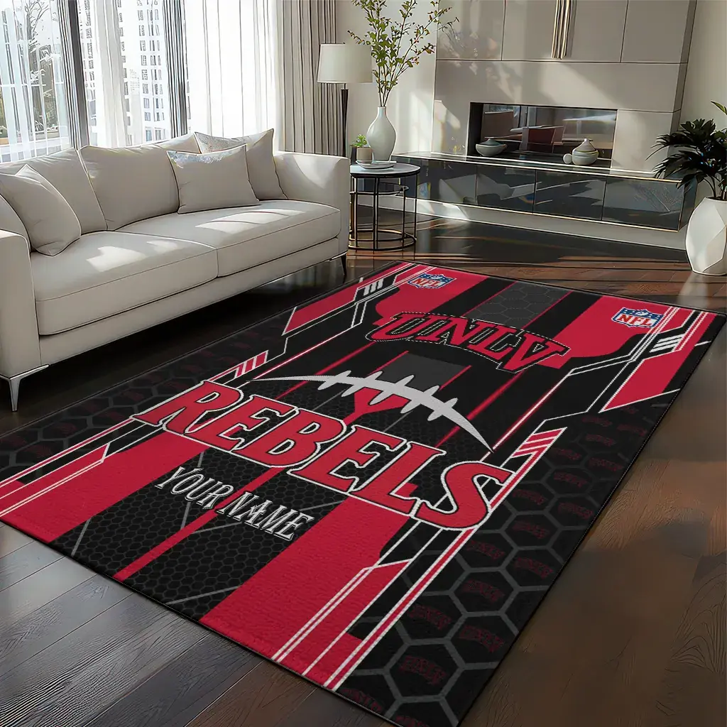 Hit a home run with your favorite team by displaying the UNLV Rebels Rug – Personalized Football Laces Red from MLB Fan Zone. Featuring a bold team design and crafted with plush velour, this durable sports rug offers ultimate comfort for your home or game-day fan cave. With a quality non-slip grip and stay-flat design, it’s the perfect accessory for any die-hard fan ready to rep their team from the living room to the clubhouse.