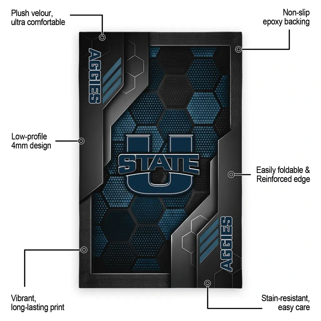 Hit a home run with your favorite team by displaying the Utah State Aggies Rug – Personalized Hexagonal Grid Pattern Navy from MLB Fan Zone. Featuring a bold team design and crafted with plush velour, this durable sports rug offers ultimate comfort for your home or game-day fan cave. With a quality non-slip grip and stay-flat design, it’s the perfect accessory for any die-hard fan ready to rep their team from the living room to the clubhouse.