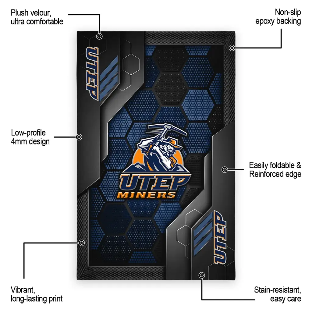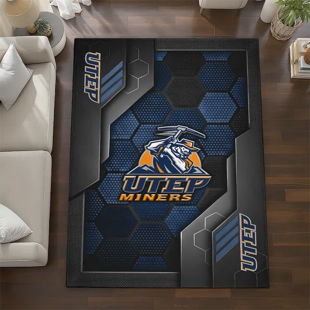 UTEP Miners Rug – Hexagonal Grid Pattern Blue