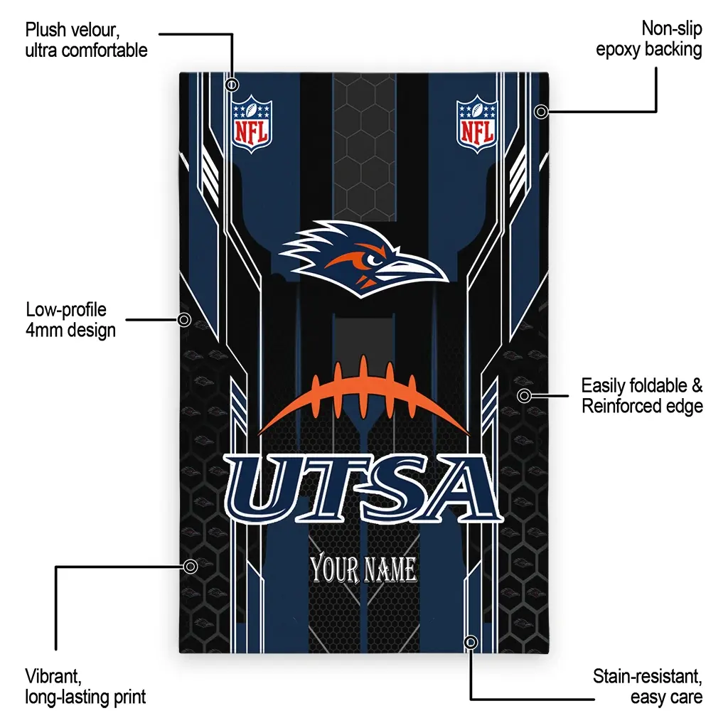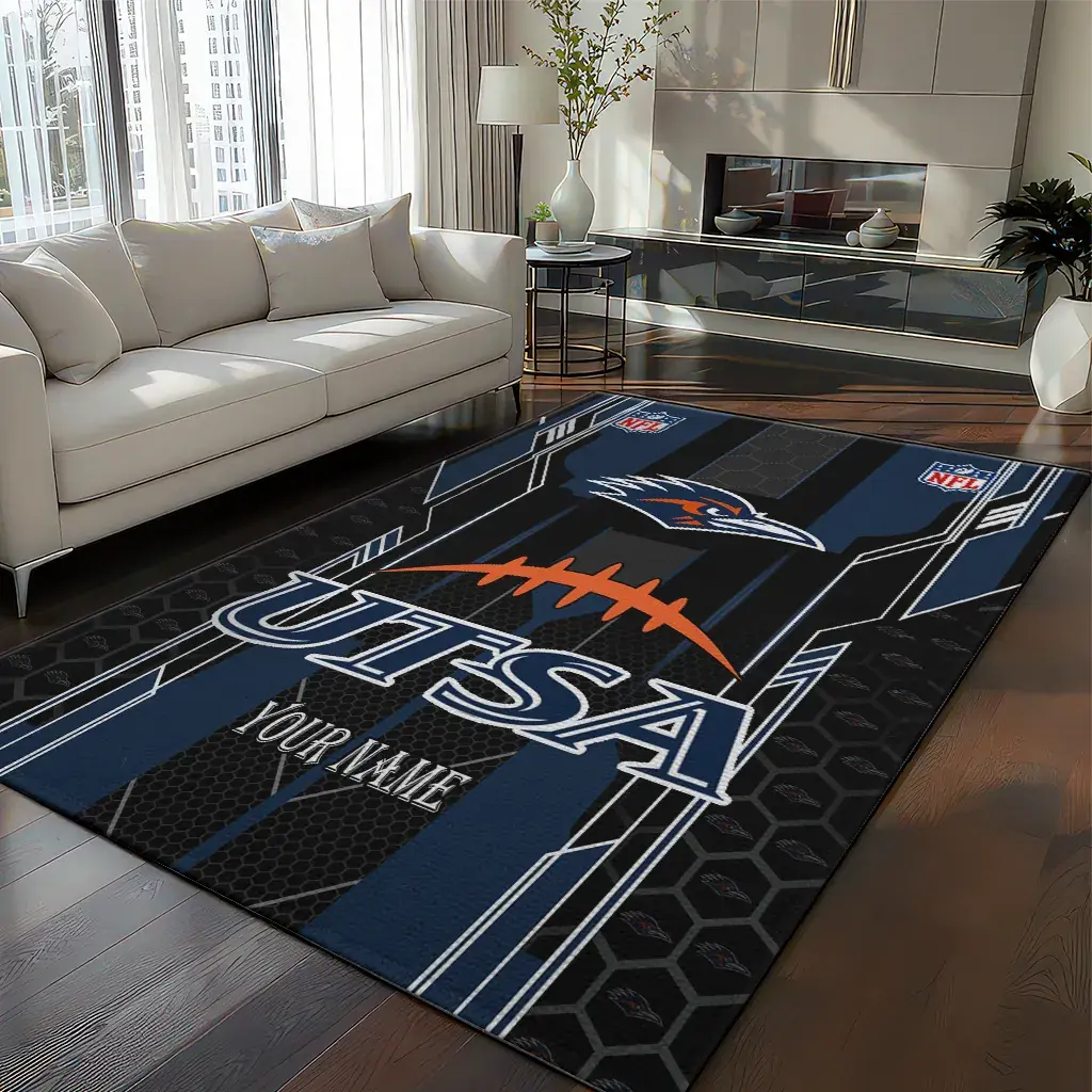 UTSA Roadrunners Rug – Customized Football Laces Navy Blue
