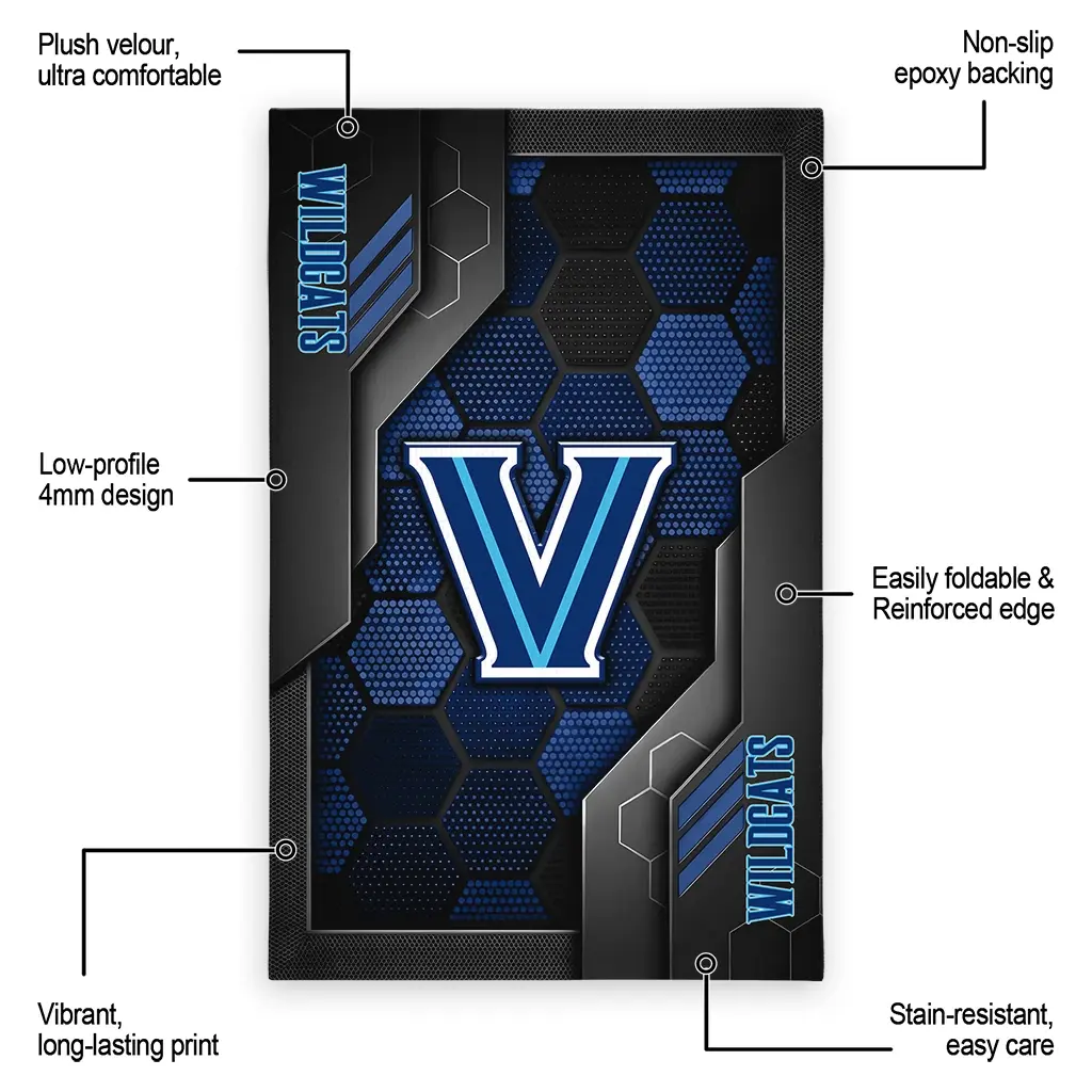 Hit a home run with your favorite team by displaying the Villanova Wildcats Rug – Customized Hexagonal Grid Pattern Navy from MLB Fan Zone. Featuring a bold team design and crafted with plush velour, this durable sports rug offers ultimate comfort for your home or game-day fan cave. With a quality non-slip grip and stay-flat design, it’s the perfect accessory for any die-hard fan ready to rep their team from the living room to the clubhouse.