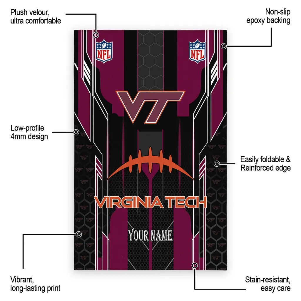 Hit a home run with your favorite team by displaying the Virginia Tech Hokies Rug – Customized Football Laces Maroon from MLB Fan Zone. Featuring a bold team design and crafted with plush velour, this durable sports rug offers ultimate comfort for your home or game-day fan cave. With a quality non-slip grip and stay-flat design, it’s the perfect accessory for any die-hard fan ready to rep their team from the living room to the clubhouse.