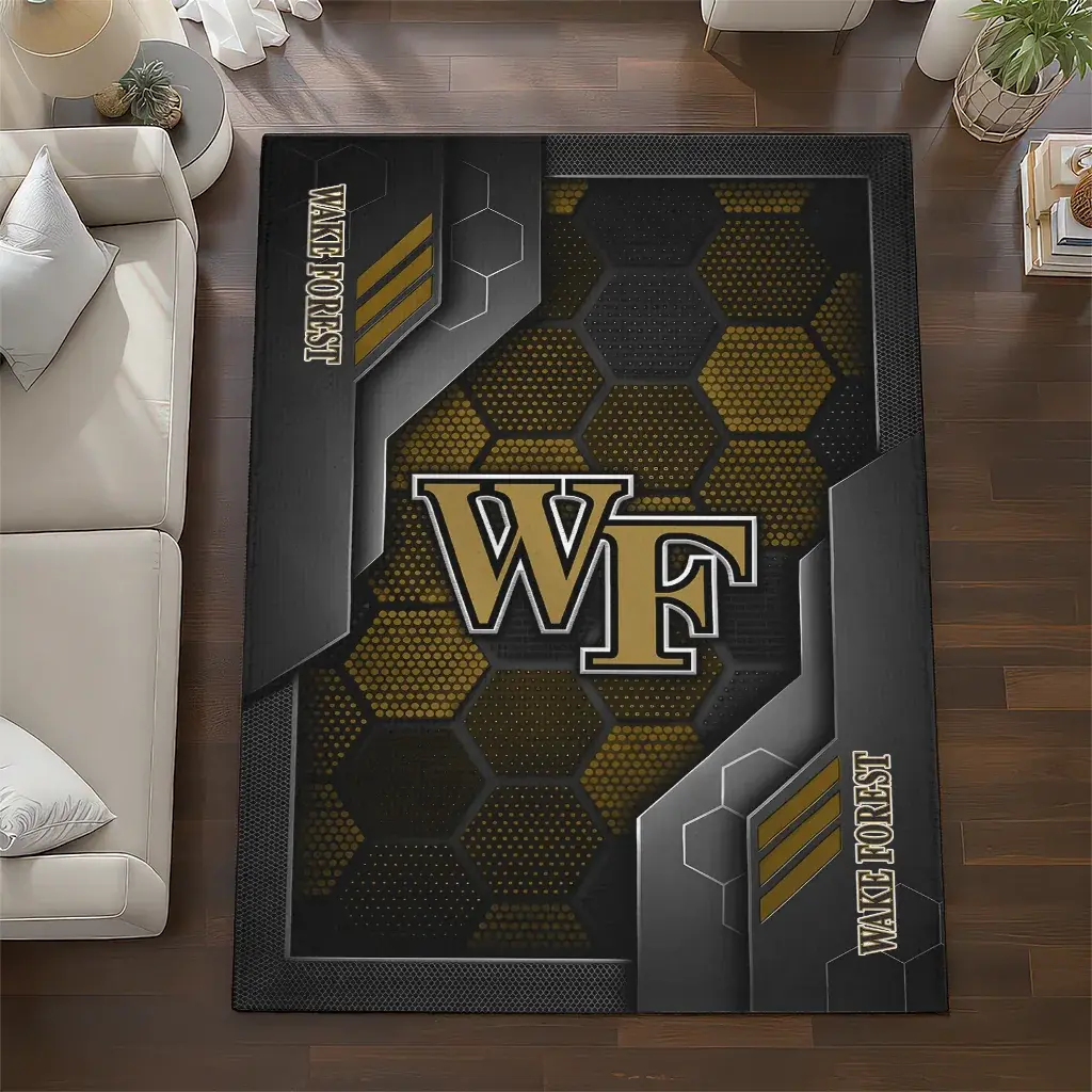 Wake Forest Demon Deacons Rug – Hexagonal Grid Pattern Black
