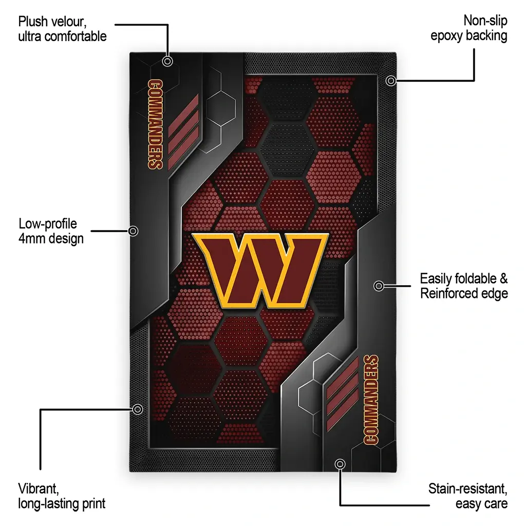 Hit a home run with your favorite team by displaying the Washington Commanders Rug – Personalized Hexagonal Grid Pattern Burgundy from MLB Fan Zone. Featuring a bold team design and crafted with plush velour, this durable sports rug offers ultimate comfort for your home or game-day fan cave. With a quality non-slip grip and stay-flat design, it’s the perfect accessory for any die-hard fan ready to rep their team from the living room to the clubhouse.