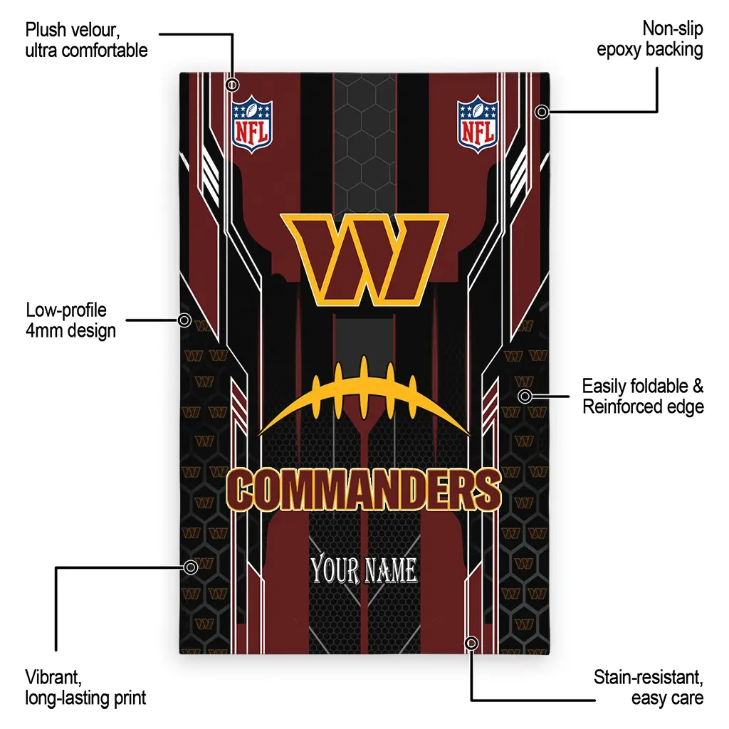 Hit a home run with your favorite team by displaying the Washington Commanders Rug – Personalized Football Laces Burgundy from MLB Fan Zone. Featuring a bold team design and crafted with plush velour, this durable sports rug offers ultimate comfort for your home or game-day fan cave. With a quality non-slip grip and stay-flat design, it’s the perfect accessory for any die-hard fan ready to rep their team from the living room to the clubhouse.