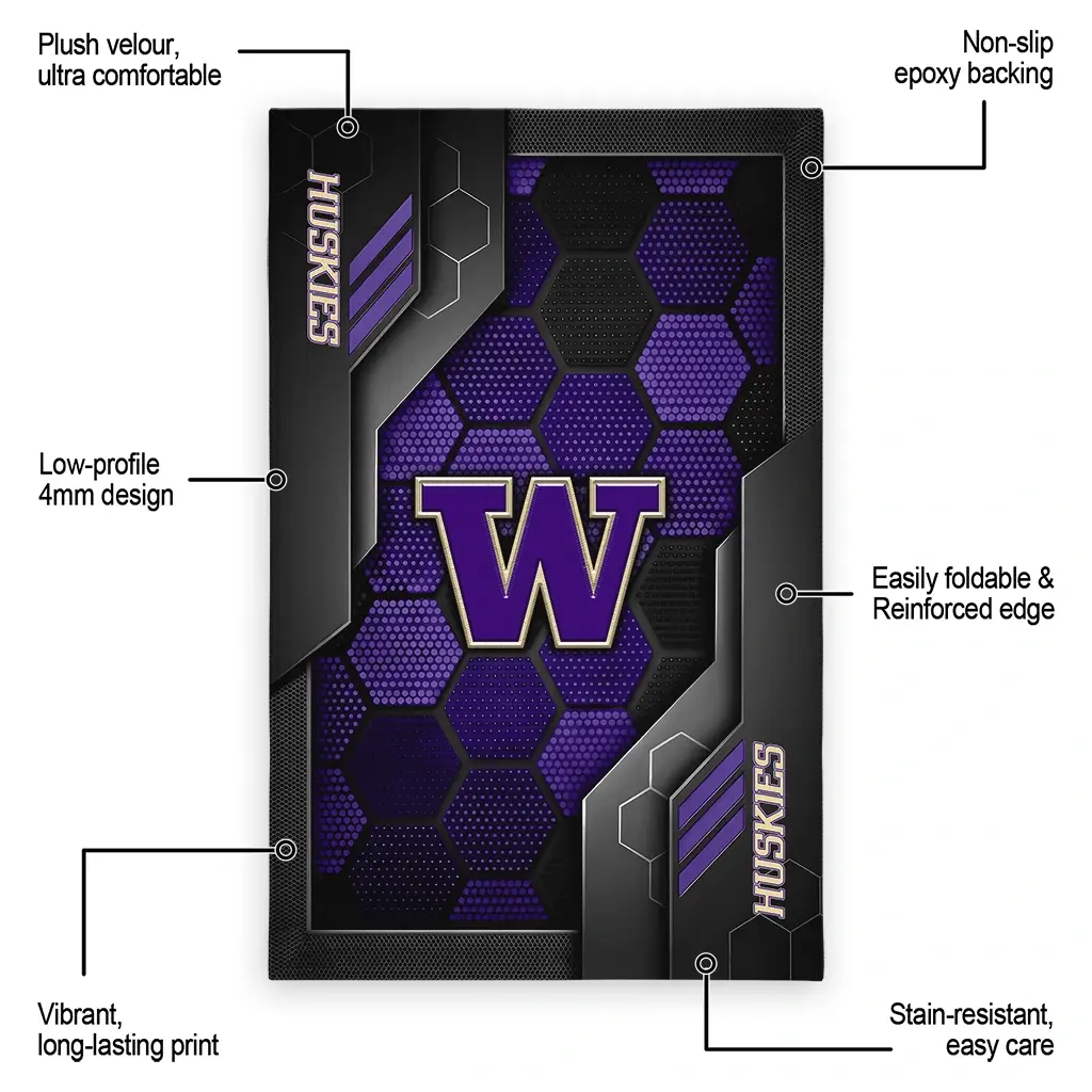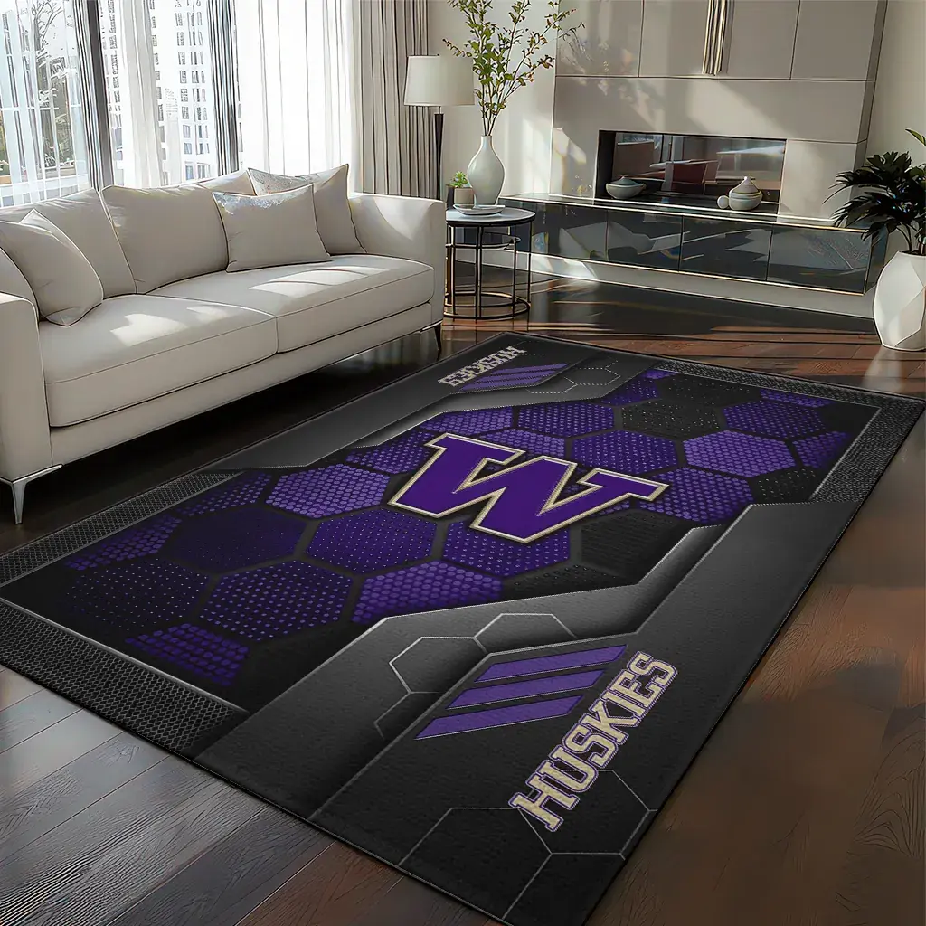 Washington Huskies Rug – Hexagonal Grid Pattern Purple