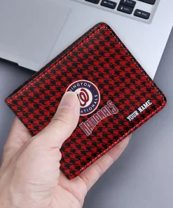 Hit a home run with Washington Nationals by wearing the Custom Washington Nationals Classic Houndstooth Red Wallet. Featuring a bold team design and crafted with premium materials, this durable sports wallet offers plenty of space for your cards, cash, and game-day essentials. With a secure fold-over closure, it’s the perfect accessory for any die-hard fan ready to rep their team, from the dugout to the streets.