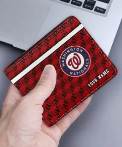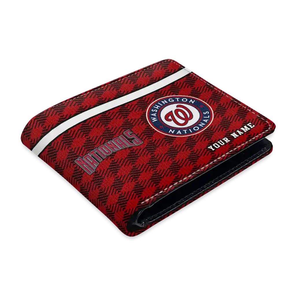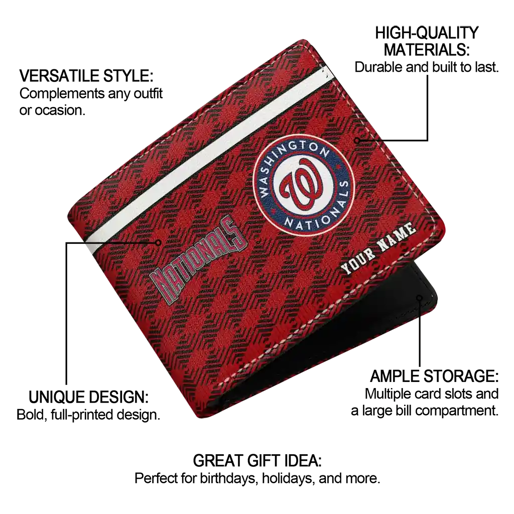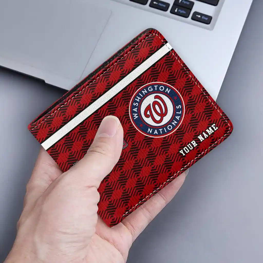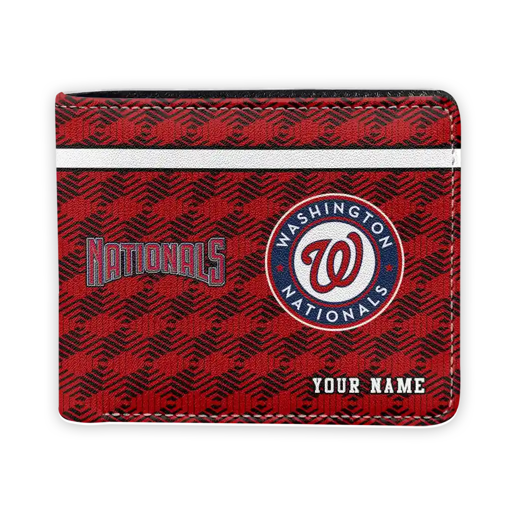 Hit a home run with Washington Nationals by wearing the Custom Washington Nationals Cube Illusion Red Wallet. Featuring a bold team design and crafted with premium materials, this durable sports wallet offers plenty of space for your cards, cash, and game-day essentials. With a secure fold-over closure, it’s the perfect accessory for any die-hard fan ready to rep their team, from the dugout to the streets.