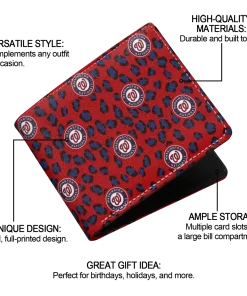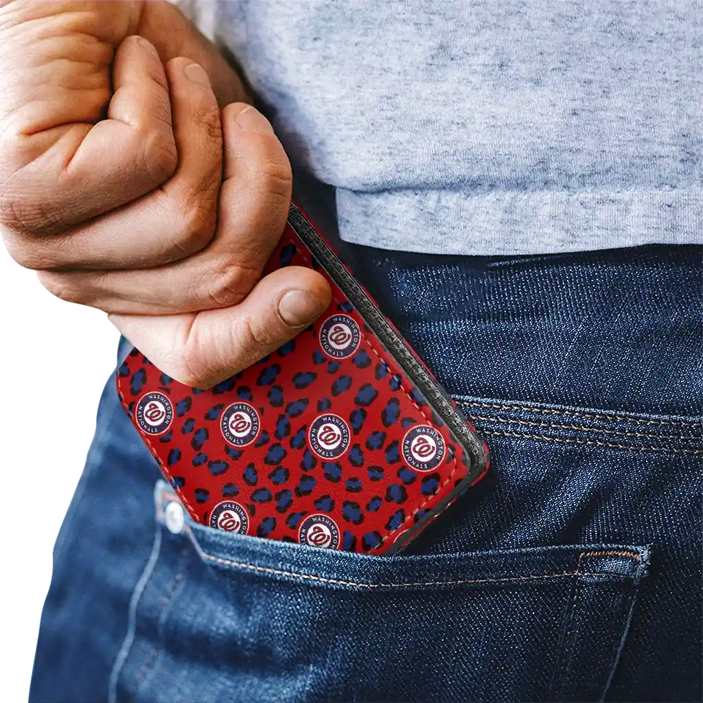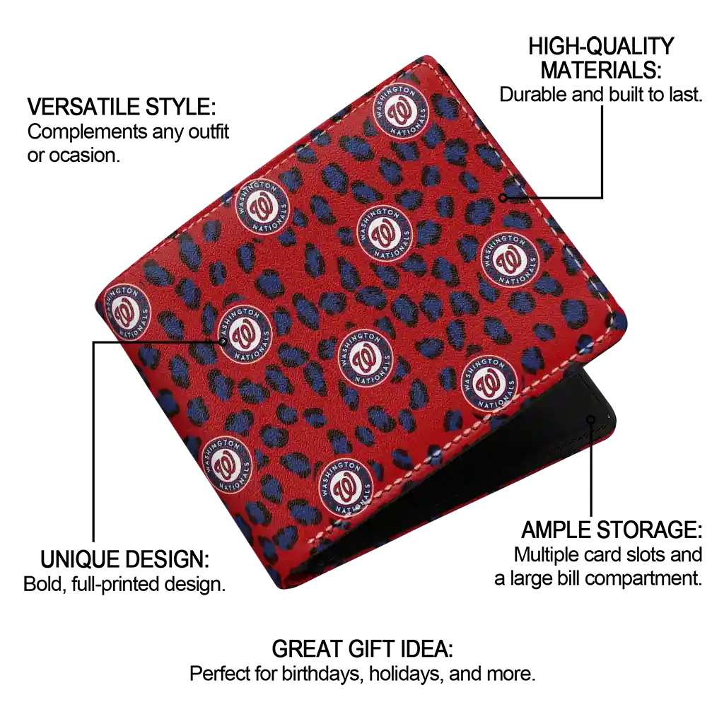 Hit a home run with Washington Nationals by wearing the Washington Nationals Leopard Texture Red Wallet. Featuring a bold team design and crafted with premium materials, this durable sports wallet offers plenty of space for your cards, cash, and game-day essentials. With a secure fold-over closure, it’s the perfect accessory for any die-hard fan ready to rep their team, from the dugout to the streets.