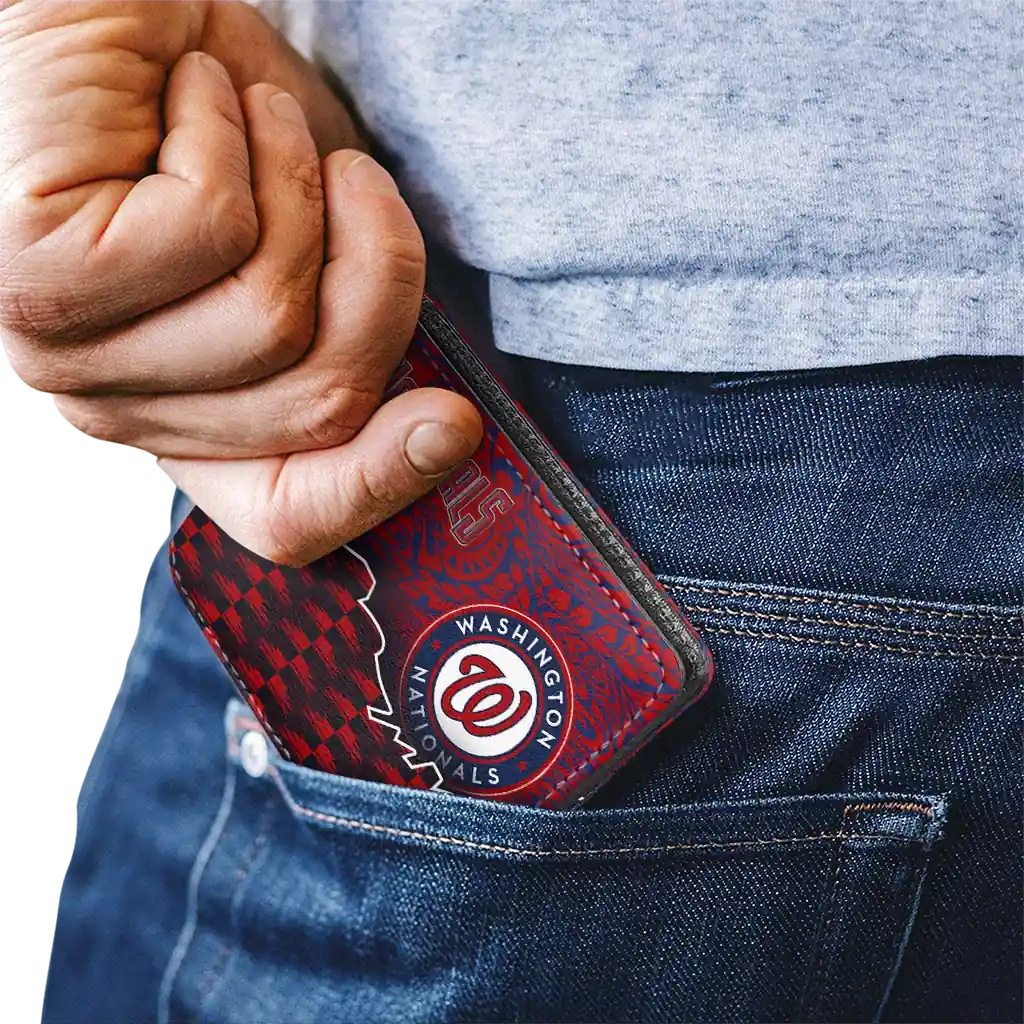 Hit a home run with Washington Nationals by wearing the Washington Nationals Tribal Fade Fusion Red Black Wallet. Featuring a bold team design and crafted with premium materials, this durable sports wallet offers plenty of space for your cards, cash, and game-day essentials. With a secure fold-over closure, it’s the perfect accessory for any die-hard fan ready to rep their team, from the dugout to the streets.