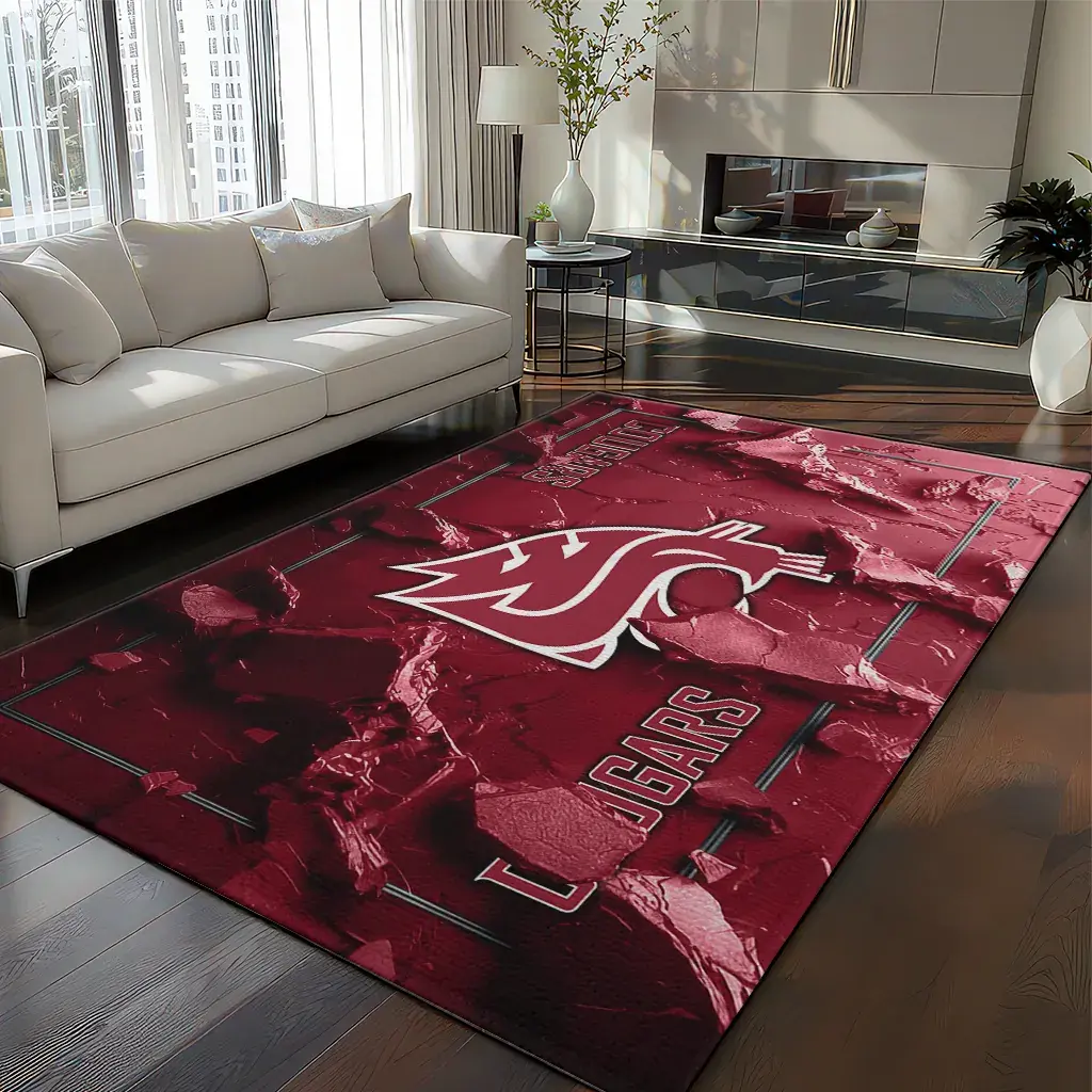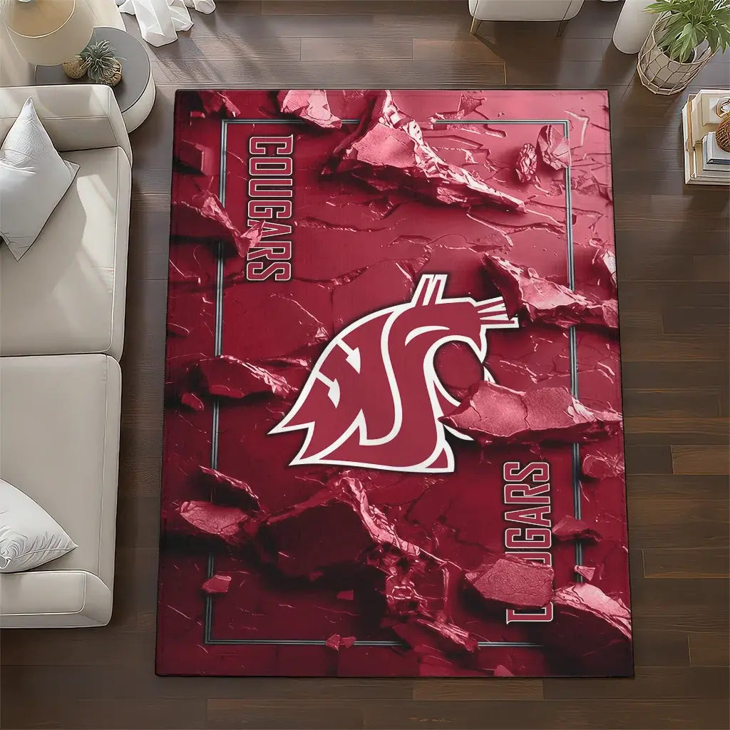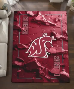 Washington State Cougars Rug – Cracked Surface Design Crimson