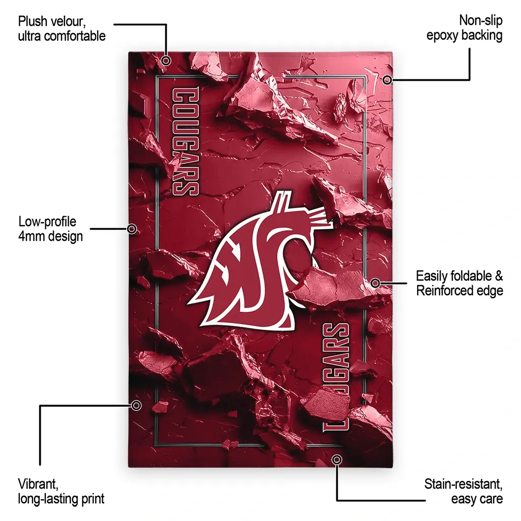 Hit a home run with your favorite team by displaying the Washington State Cougars Rug – Customized Cracked Surface Design Crimson from MLB Fan Zone. Featuring a bold team design and crafted with plush velour, this durable sports rug offers ultimate comfort for your home or game-day fan cave. With a quality non-slip grip and stay-flat design, it’s the perfect accessory for any die-hard fan ready to rep their team from the living room to the clubhouse.