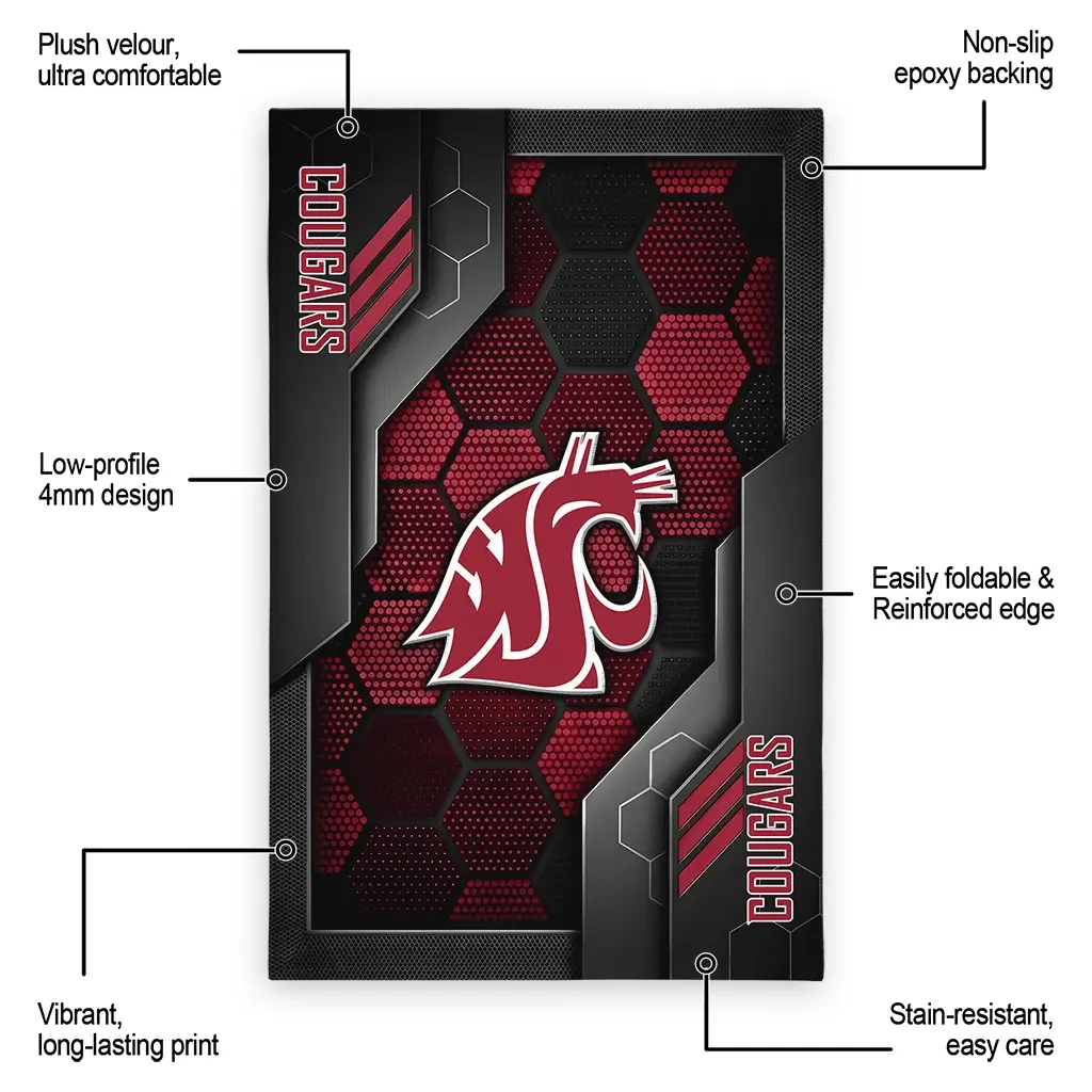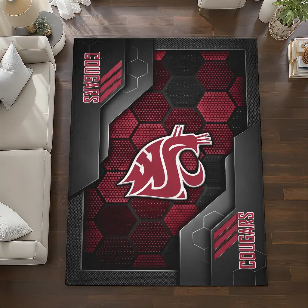 Washington State Cougars Rug – Hexagonal Grid Pattern Crimson