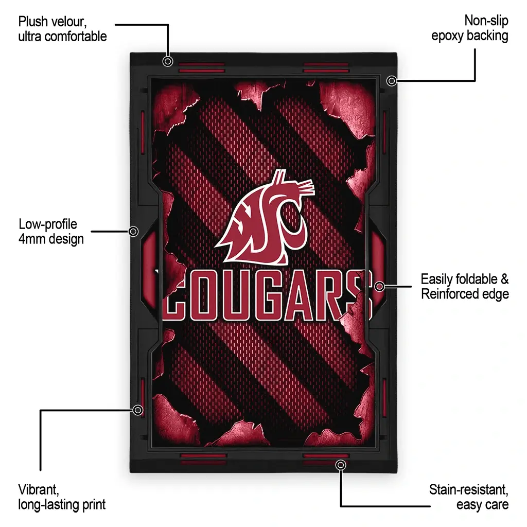 Washington State Cougars Rug – Torn Mesh Crimson
