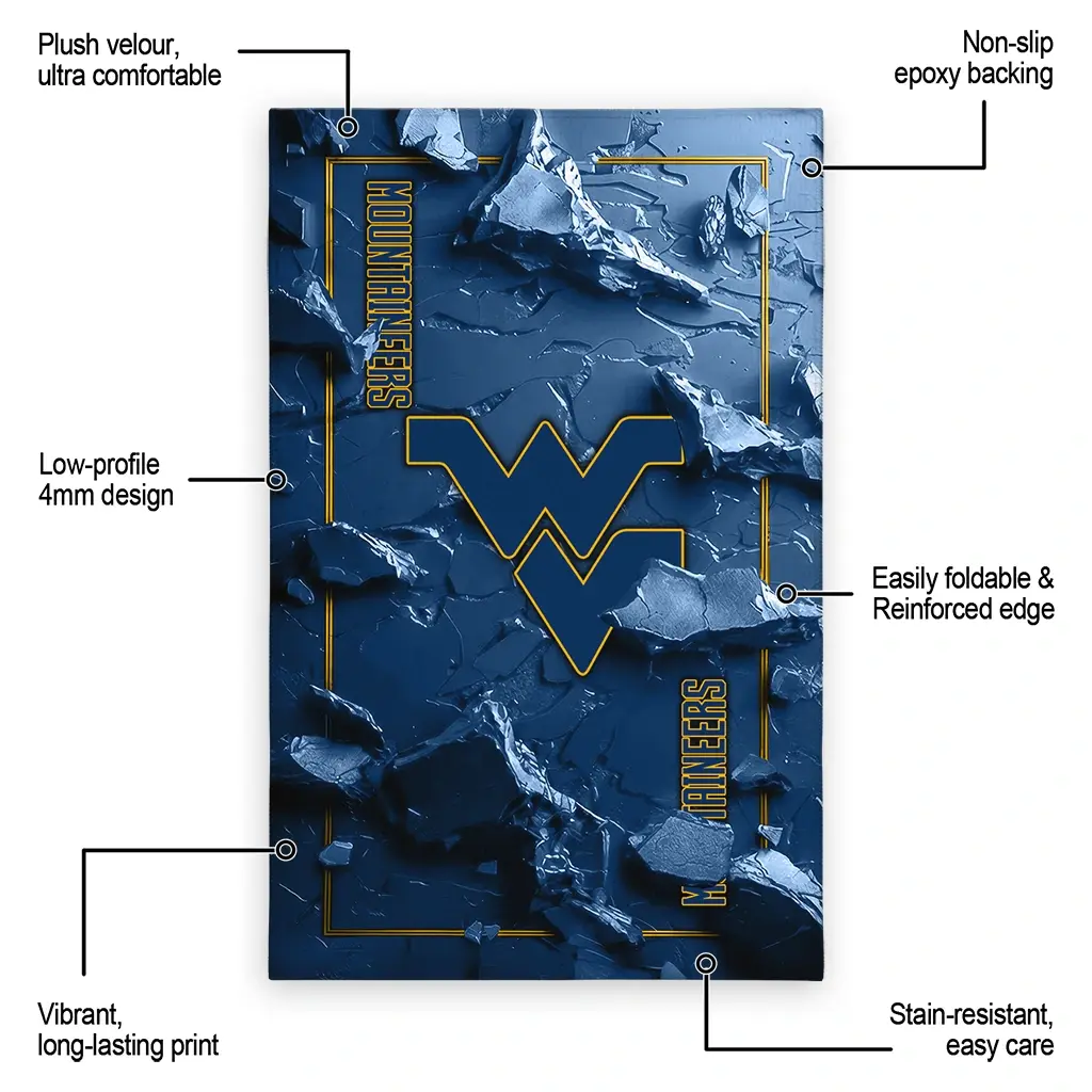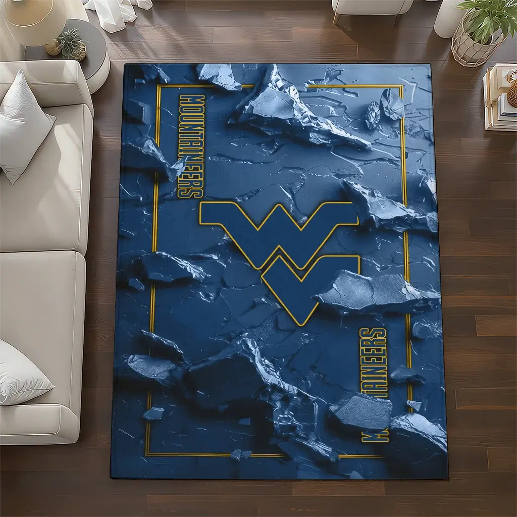 West Virginia Mountaineers Rug – Cracked Surface Design Blue