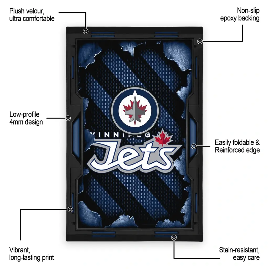 Hit a home run with your favorite team by displaying the Winnipeg Jets Rug – Custom Torn Mesh Blue from MLB Fan Zone. Featuring a bold team design and crafted with plush velour, this durable sports rug offers ultimate comfort for your home or game-day fan cave. With a quality non-slip grip and stay-flat design, it’s the perfect accessory for any die-hard fan ready to rep their team from the living room to the clubhouse.
