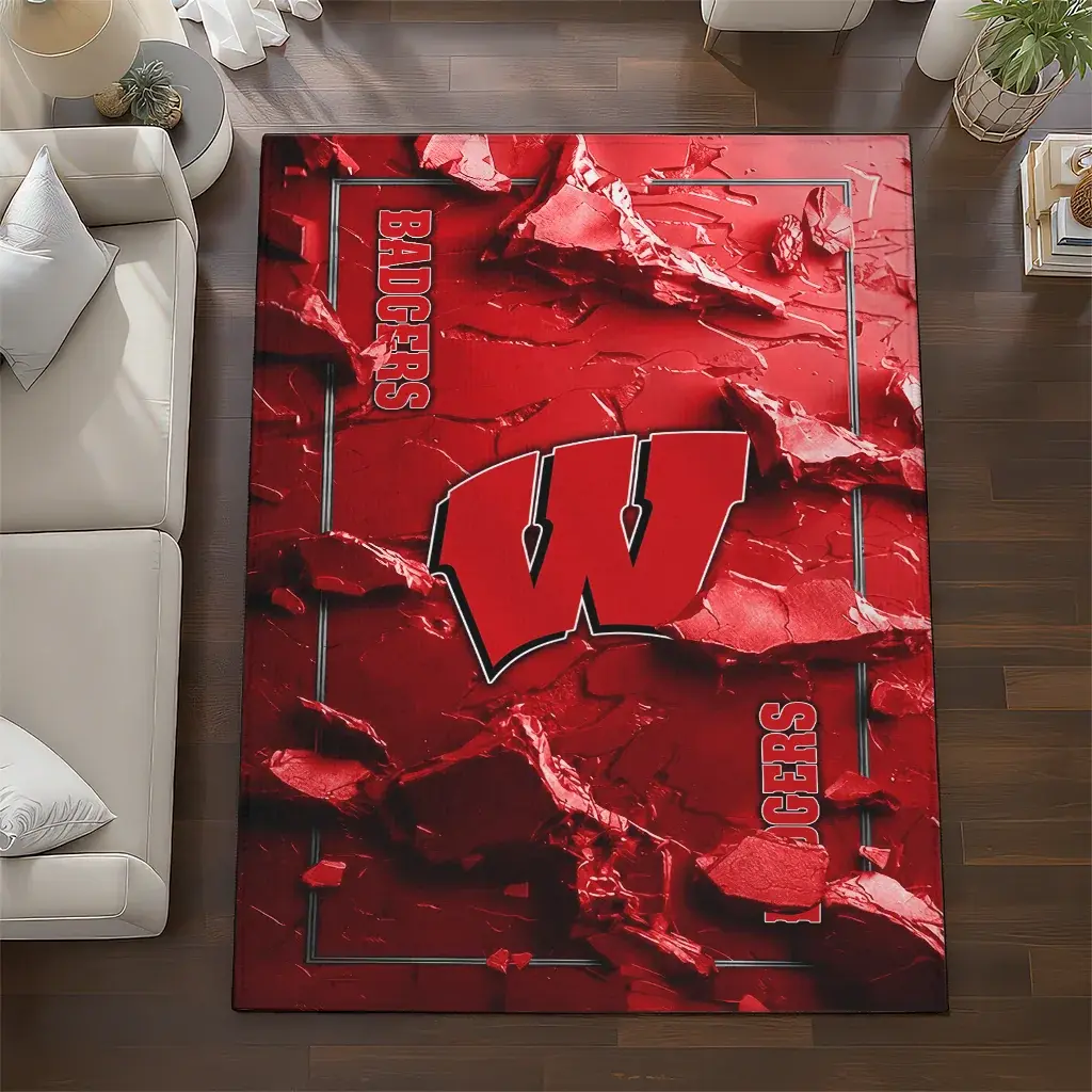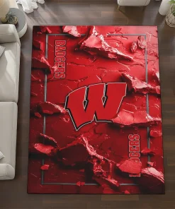 Wisconsin Badgers Rug – Cracked Surface Design Red