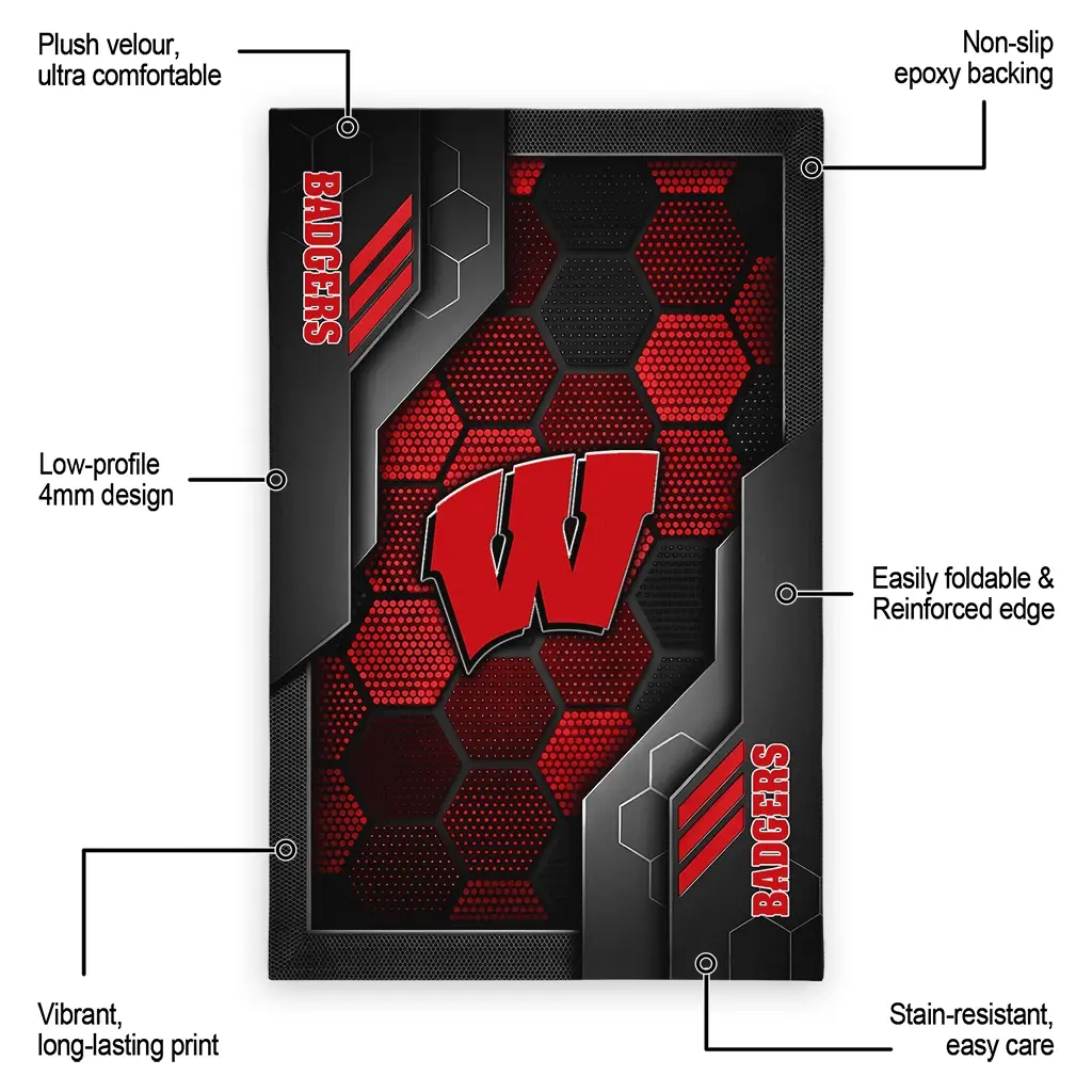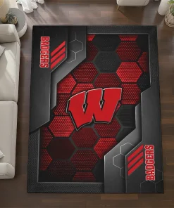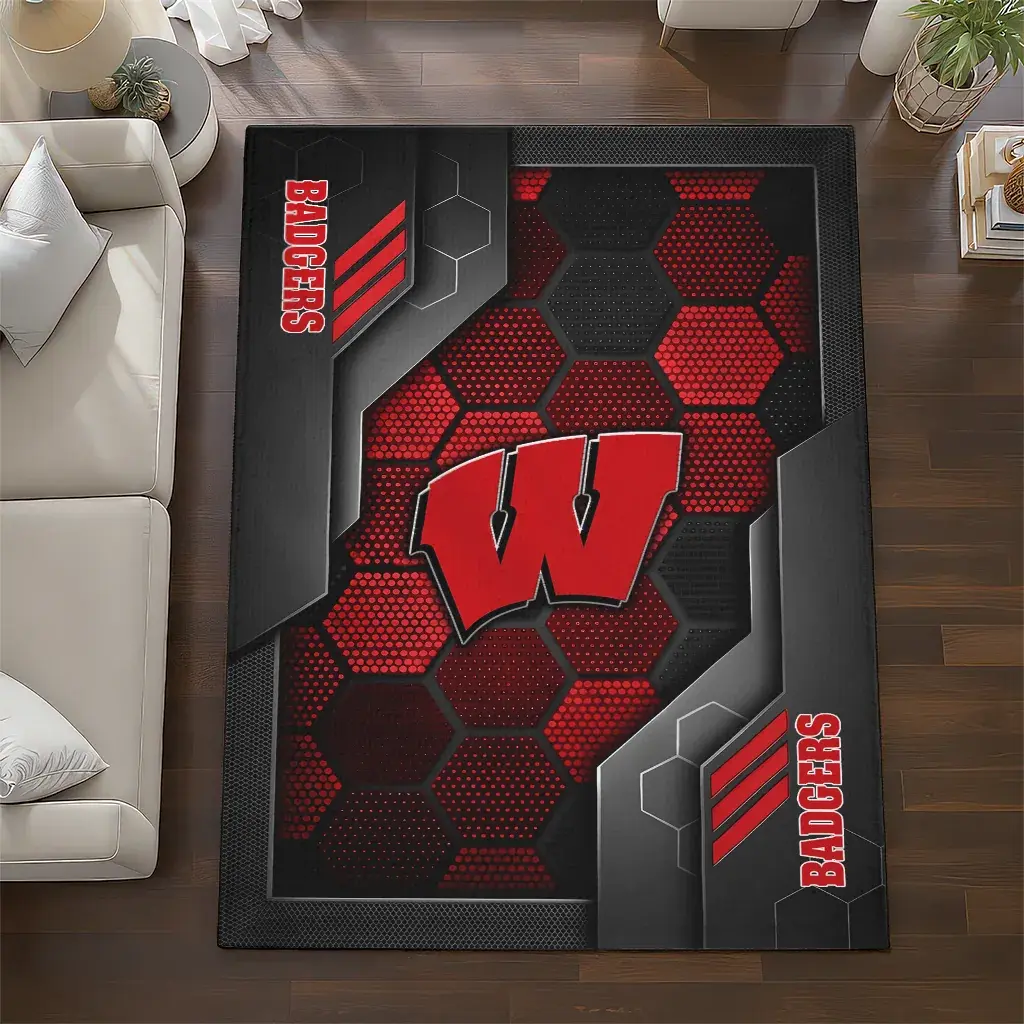 Wisconsin Badgers Rug – Hexagonal Grid Pattern Red