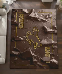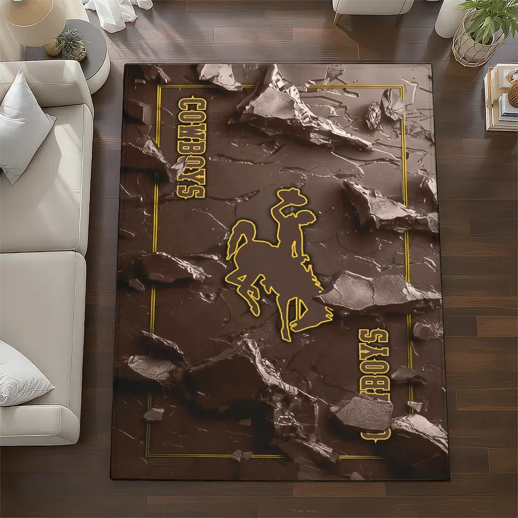 Wyoming Cowboys Rug – Cracked Surface Design Brown