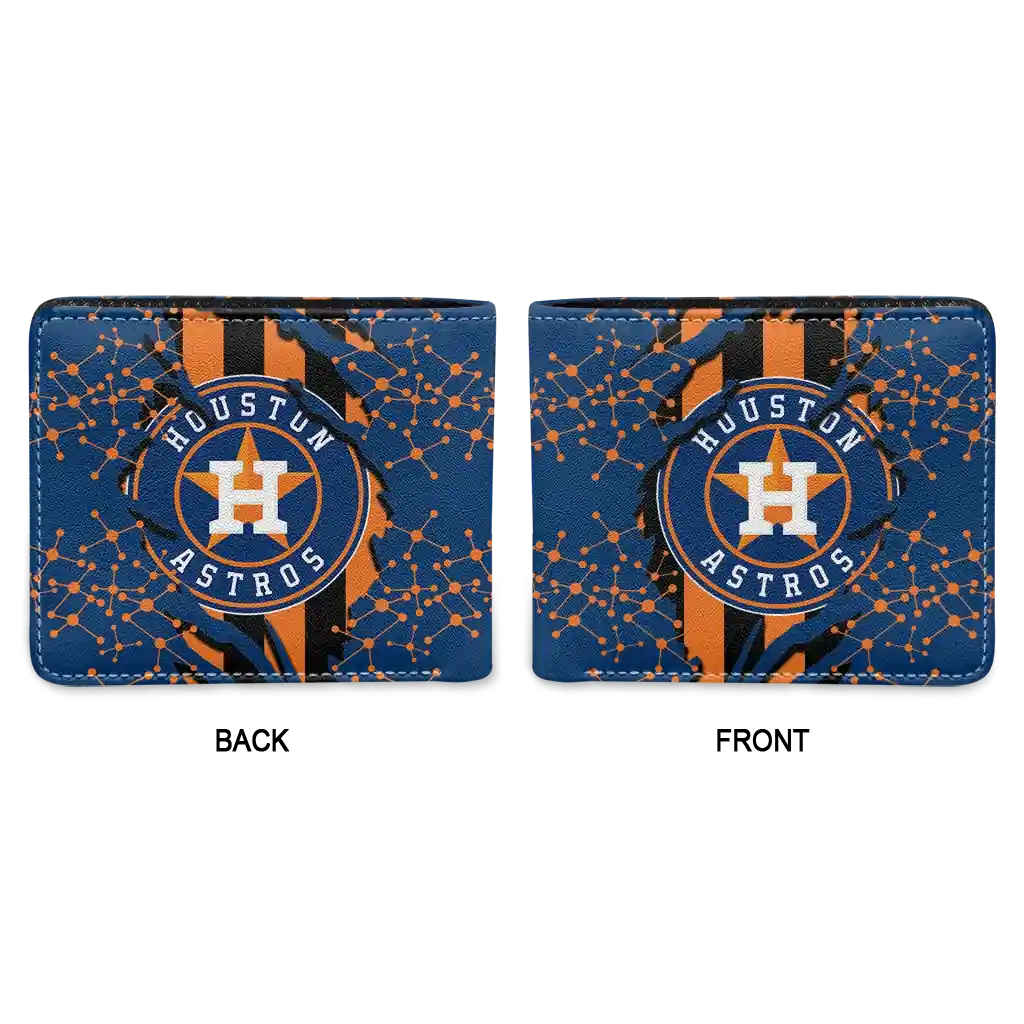 Hit a home run with Houston Astros by wearing the Houston Astros Torn Stripe Chaos Blue Black Wallet…