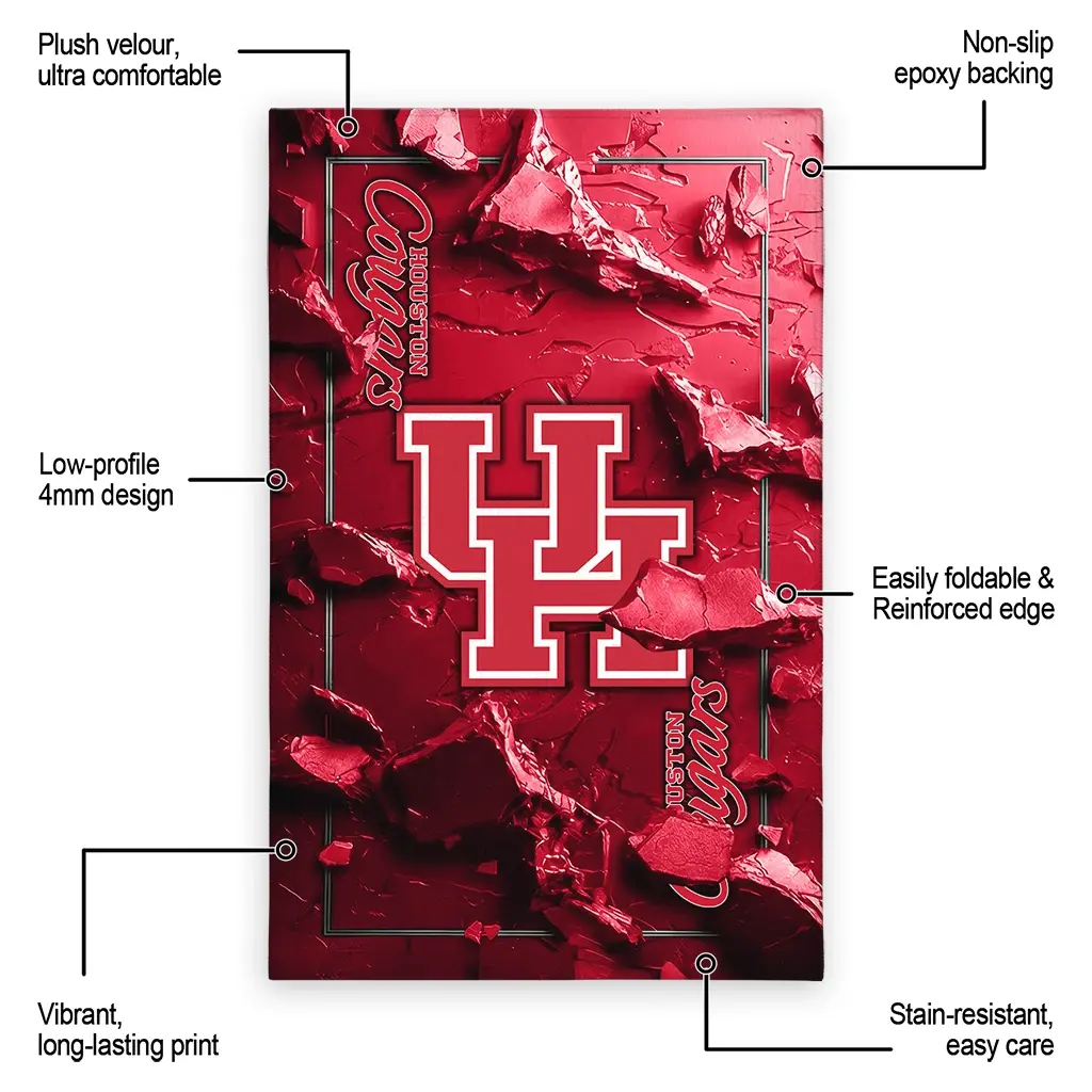 Hit a home run with your favorite team by displaying the Houston Cougars Rug – Custom Cracked Surf…